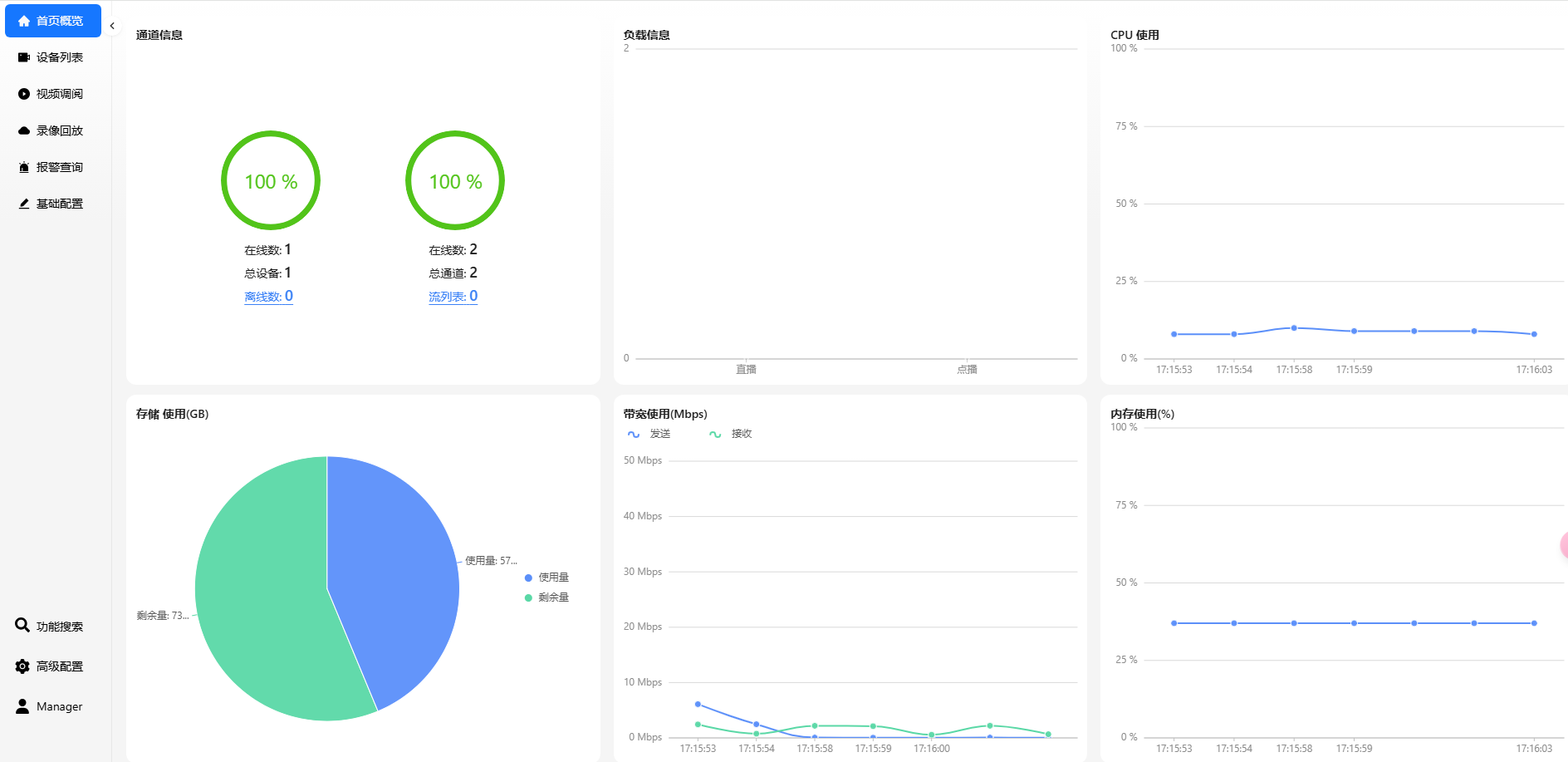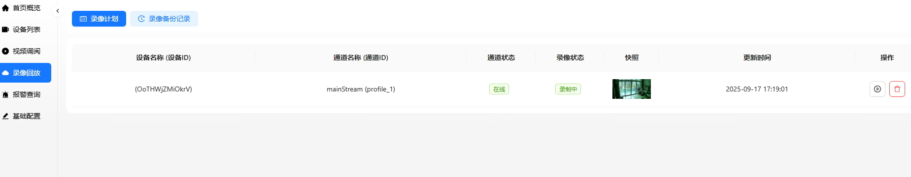 找到设备列表添加摄像头的ip,端口,账户及密码即可上线。