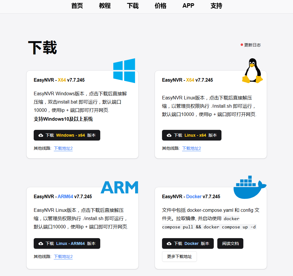 直接从官方下载docker版: https://easynvr.com/download.html