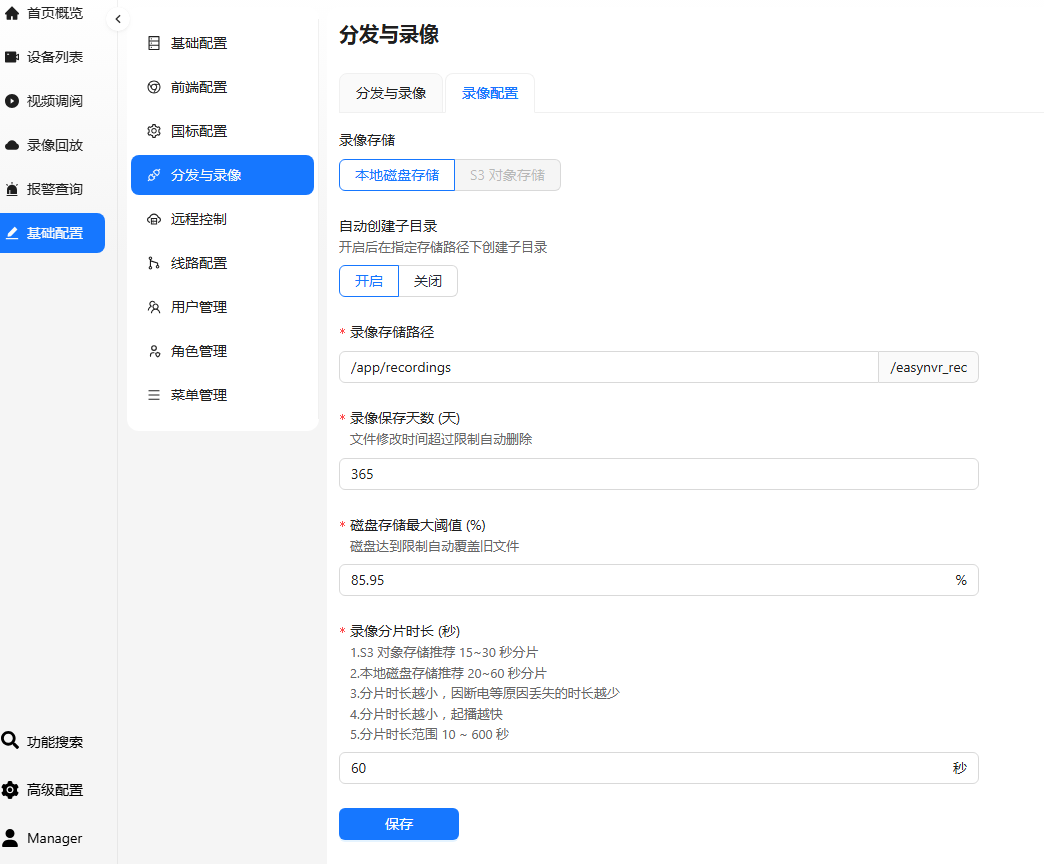 同时,我把存储目录映射到了/vol1/1000/rec/nvr下。